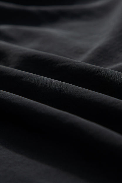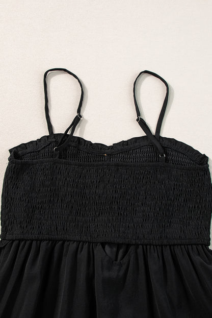 Black Spaghetti Straps Smocked Front Slit Buttoned Dress