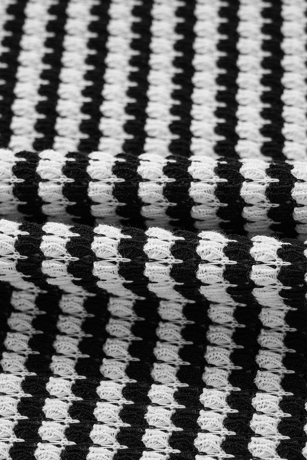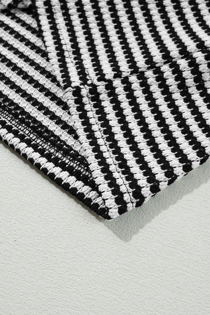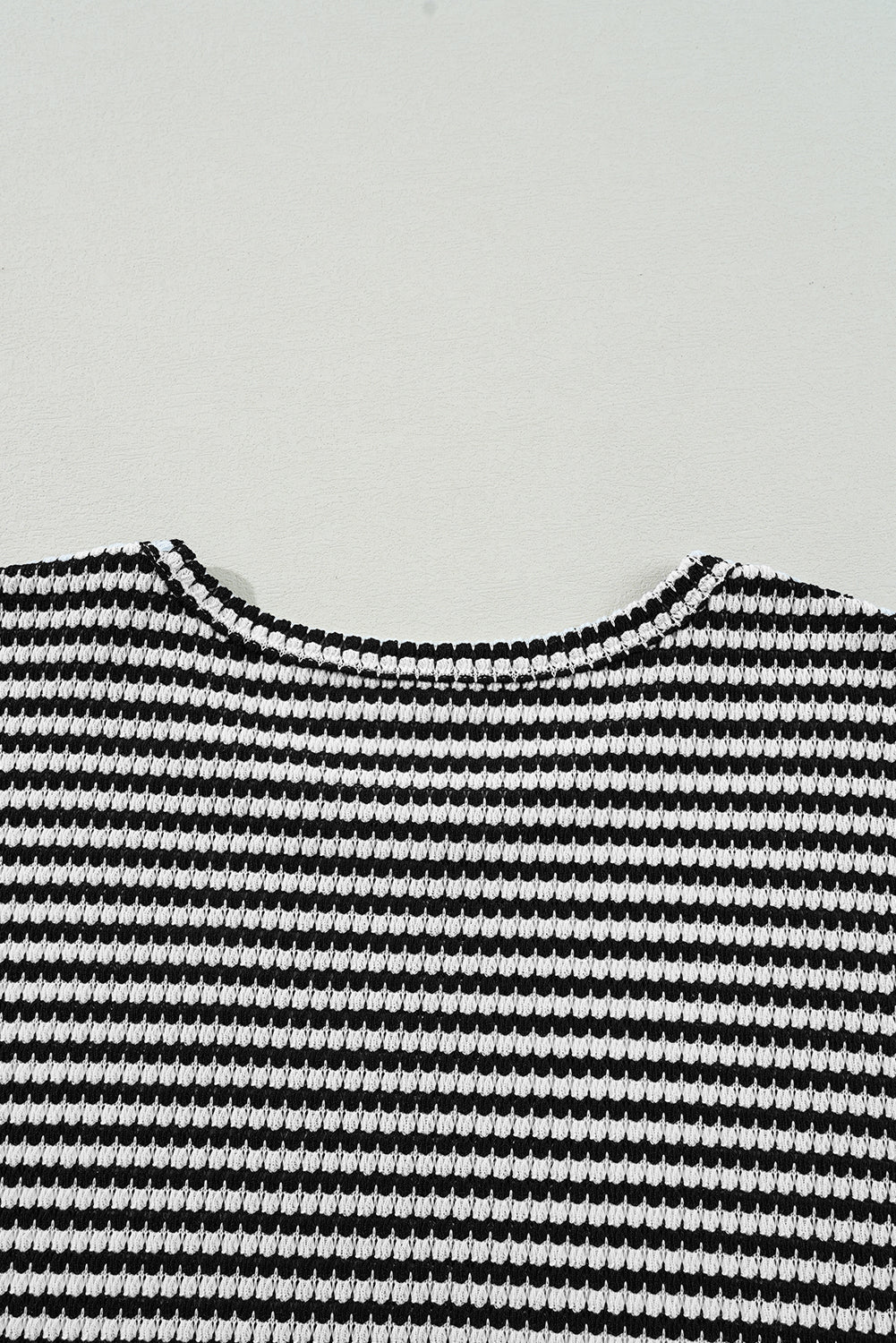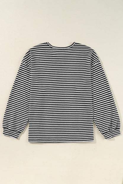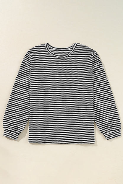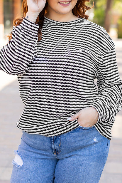 Black Stripe Drop Shoulder Puff Long Sleeve O Neck Plus Size T Shirt