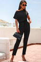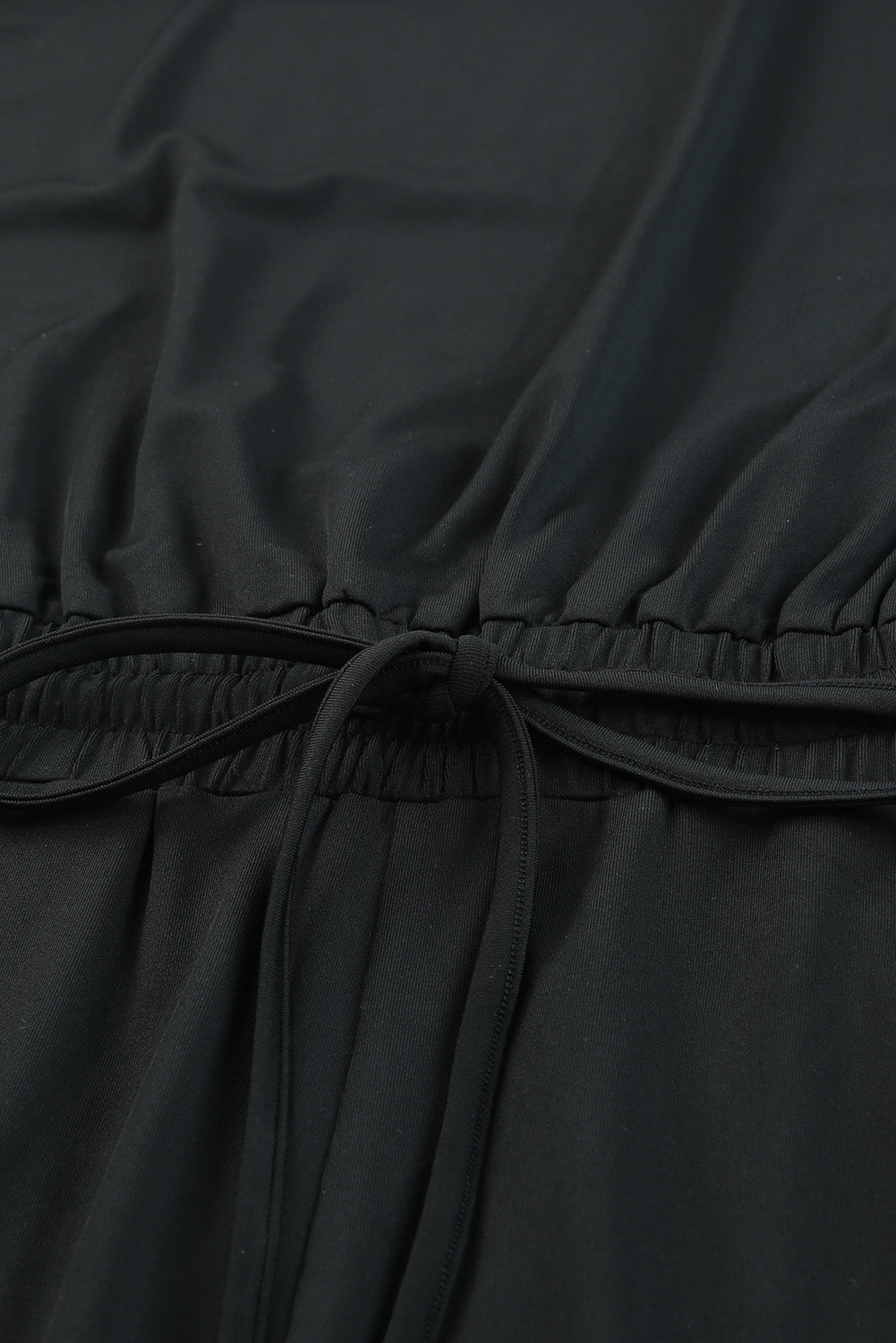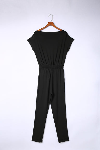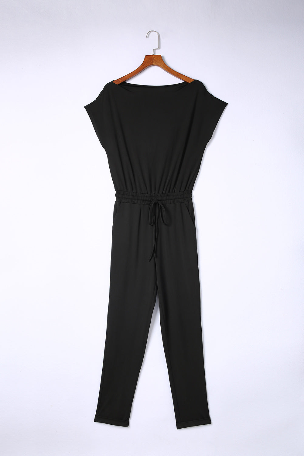 Black Tie Waist Short Sleeve Tapered Jumpsuit