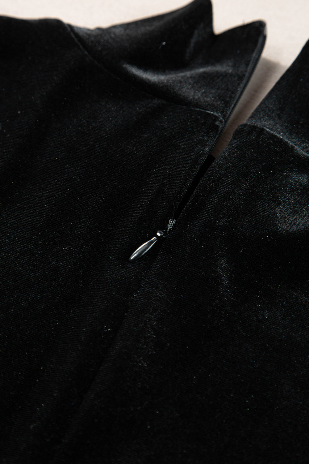 Black Velvet High Neck Tiered Ruffle Mini Dress