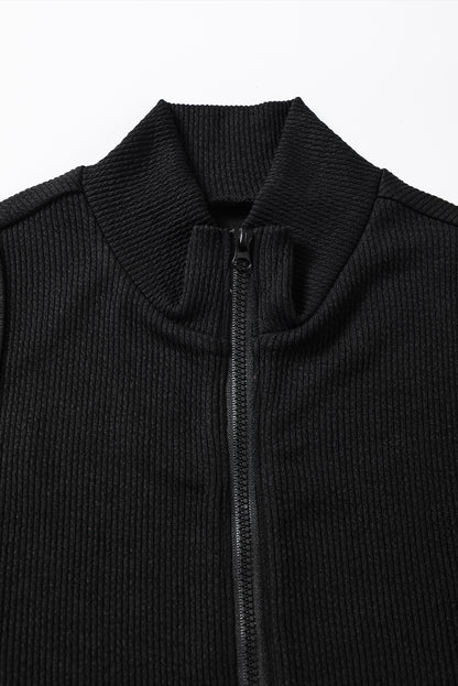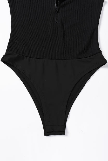 Black Zip up Mock Neck Ribbed Sleeveless Bodysuit