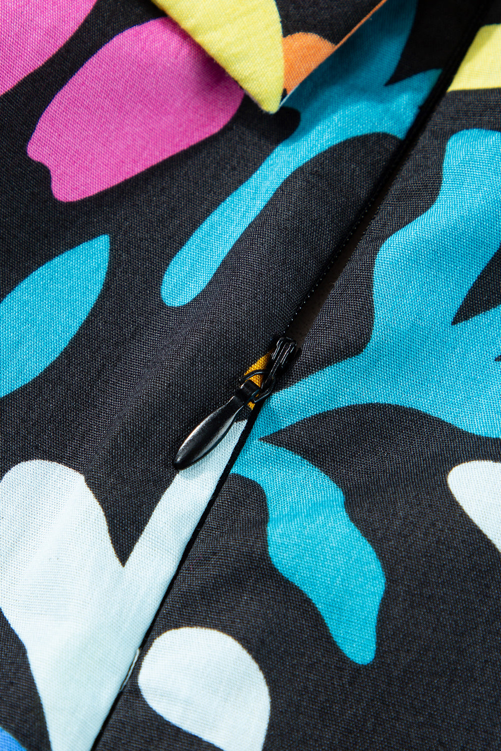 The eye-catching floral pattern adds a touch of femininity and liveliness to the ensemble