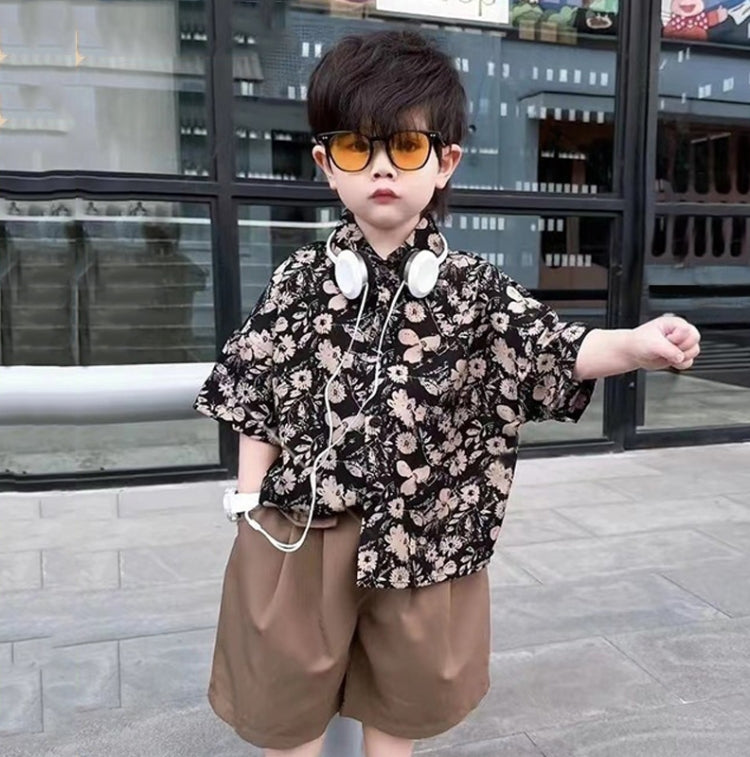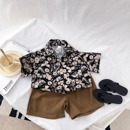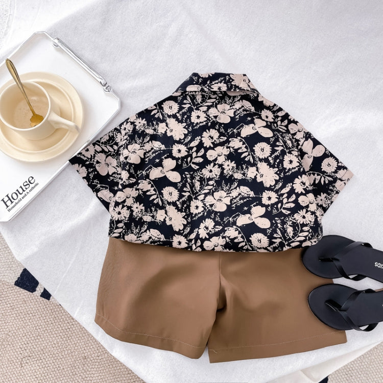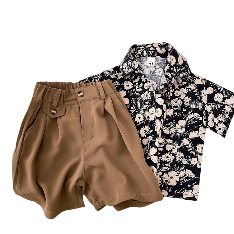 Boys Floral Shirt + Shorts Pants Set Summer Thin Children Short-sleeved Shirt, Size: 90cm