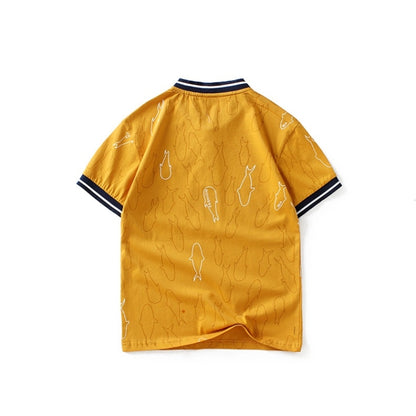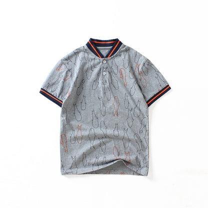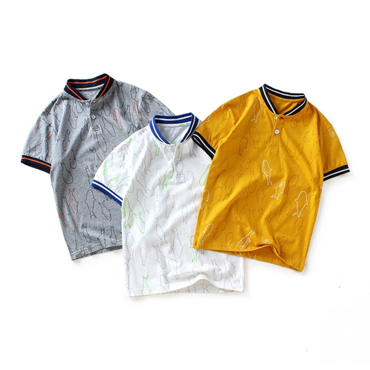 Boys Short Sleeve T-shirt Polo Shirt (Color:Grey Size:130cm)