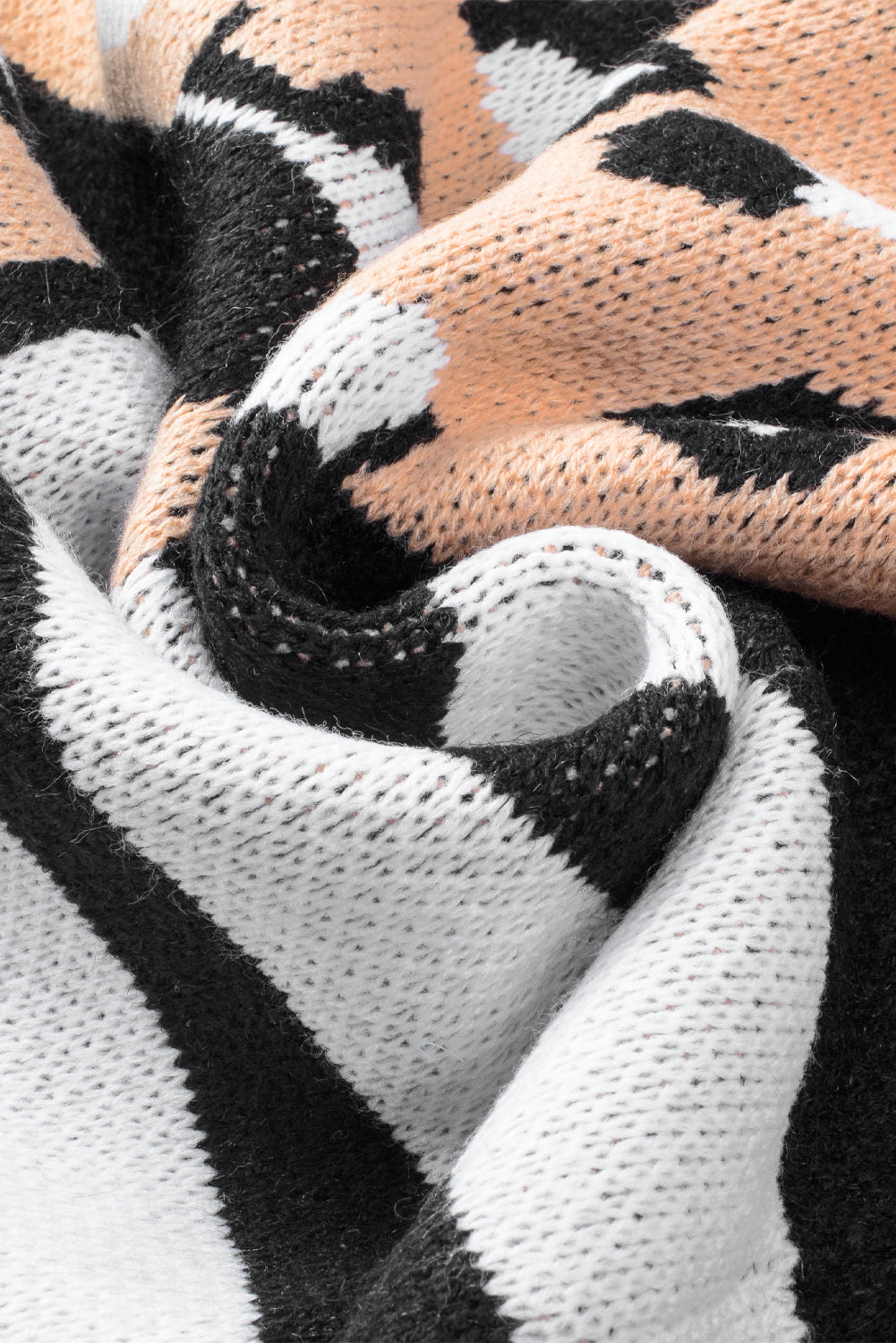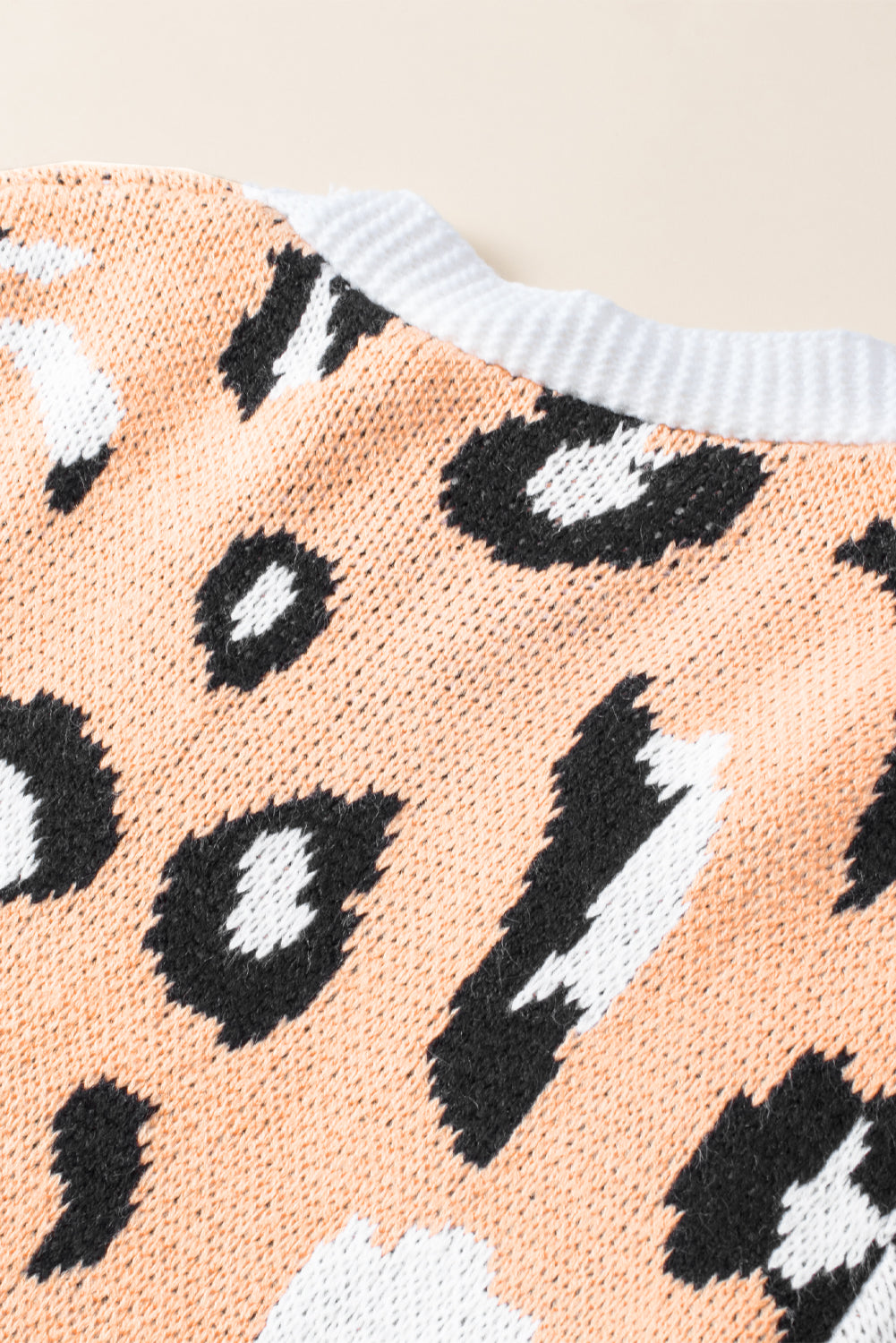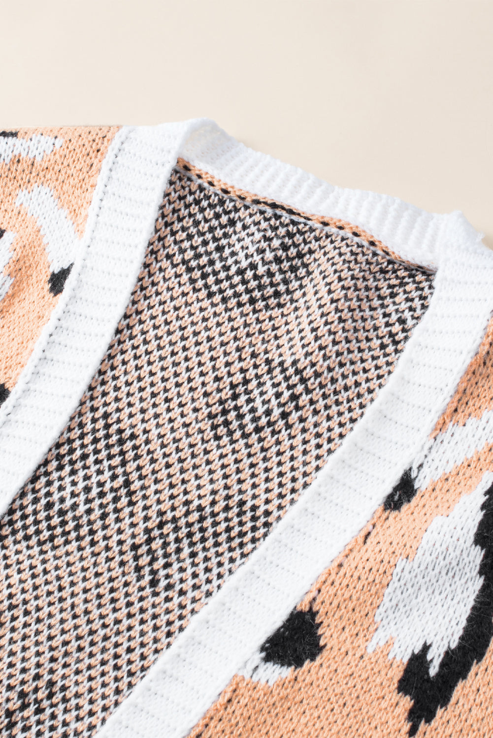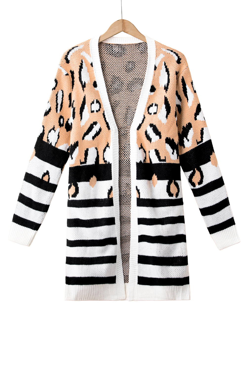- This knit cardigan is fashionable with leopard striped mixed pattern silhouette