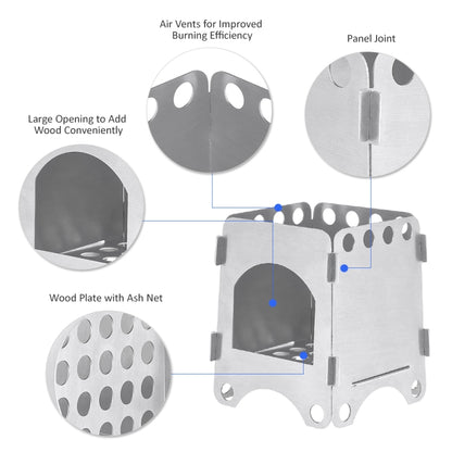 Camping Wood Stove Ultralight Folding Pocket Stove Outdoor Backpacking Cooking Wood Burning Stove Aluminum-Titanium