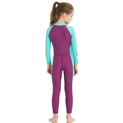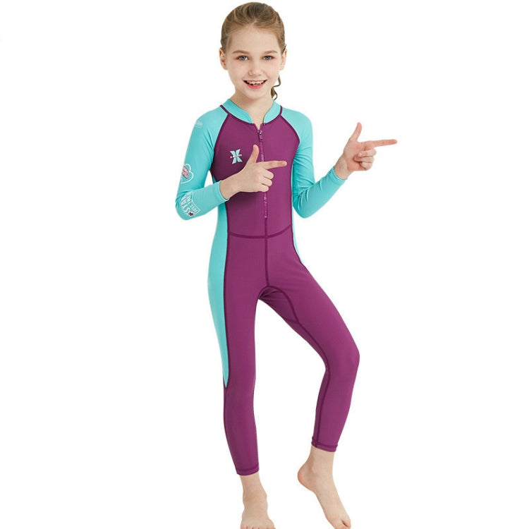 DIVE&SAIL Children Diving Suit Outdoor Long-sleeved One-piece Swimsuit Sunscreen Swimwear, Size: L(Girls Rose Red)