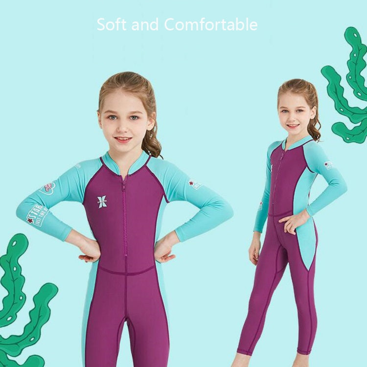 DIVE&SAIL Children Diving Suit Outdoor Long-sleeved One-piece Swimsuit Sunscreen Swimwear, Size: XXL(Girls Rose Red)