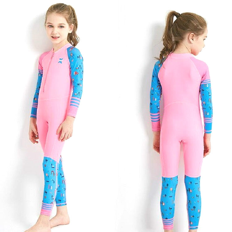 DIVE & SAIL LS-18822 Children Diving Suit Outdoor Sunscreen One-piece Swimsuit, Size: XXL(Girl Pink)