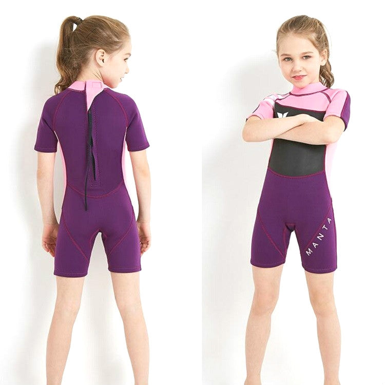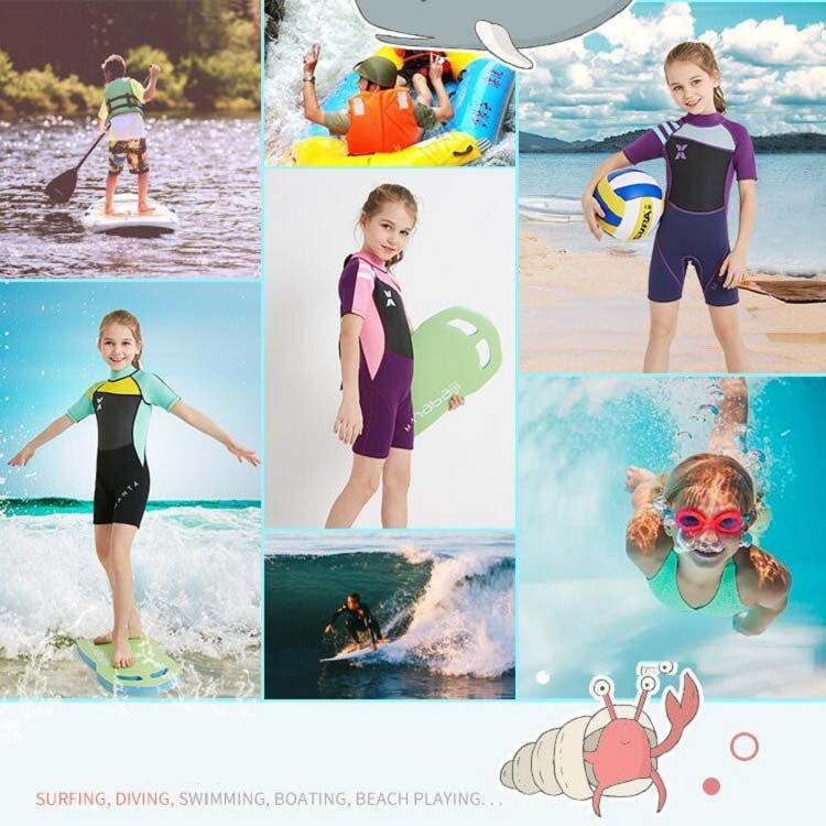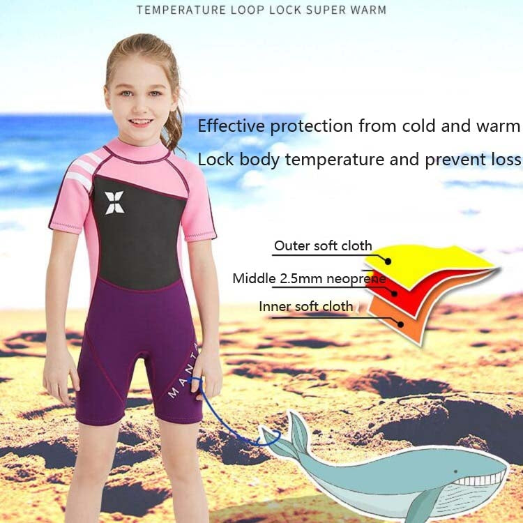 DIVE & SAIL WS-18813 2.5mm Children Warm Diving Suit One-piece Short-sleeved Sunscreen Snorkeling Suit Drifting Cold-proof Swimming Suit, Size: XL(Black Powder Sleeve)