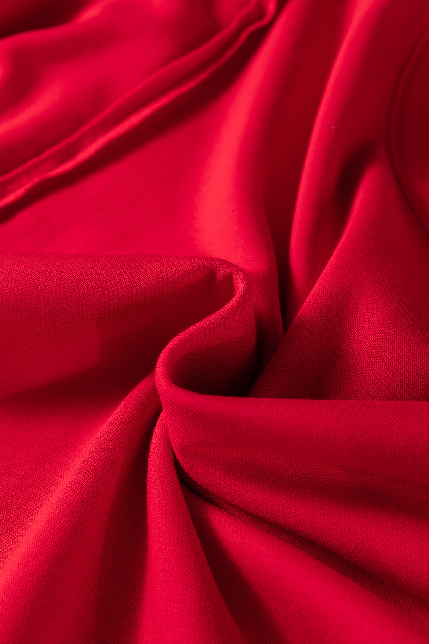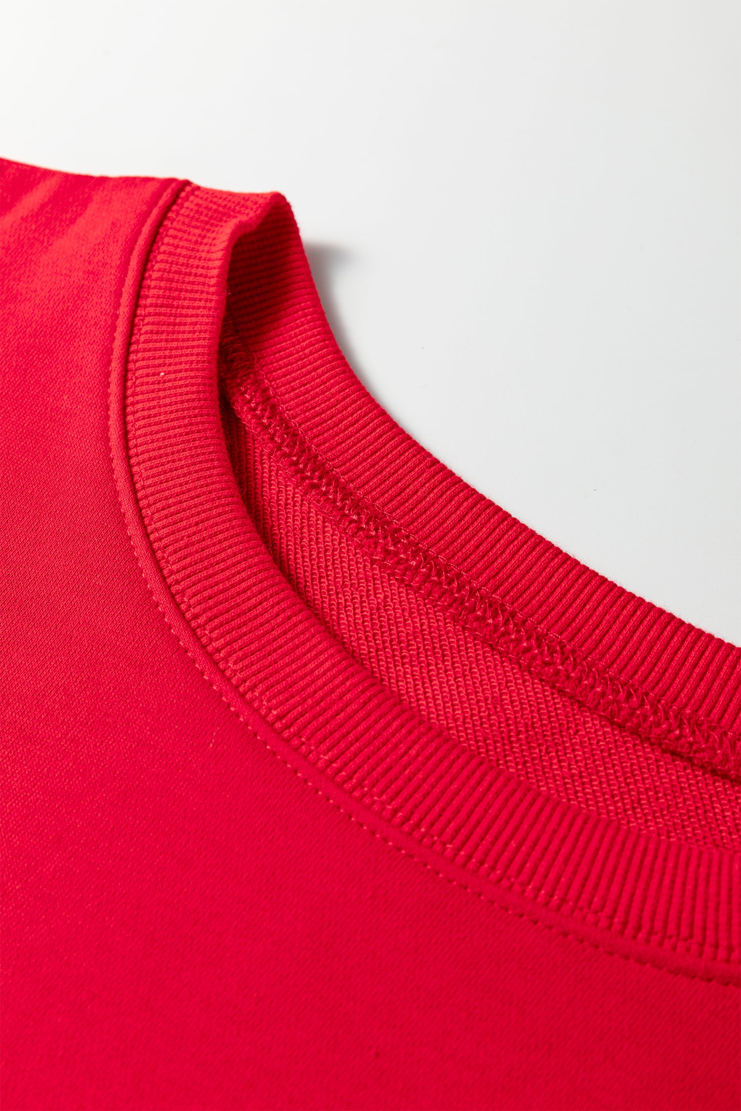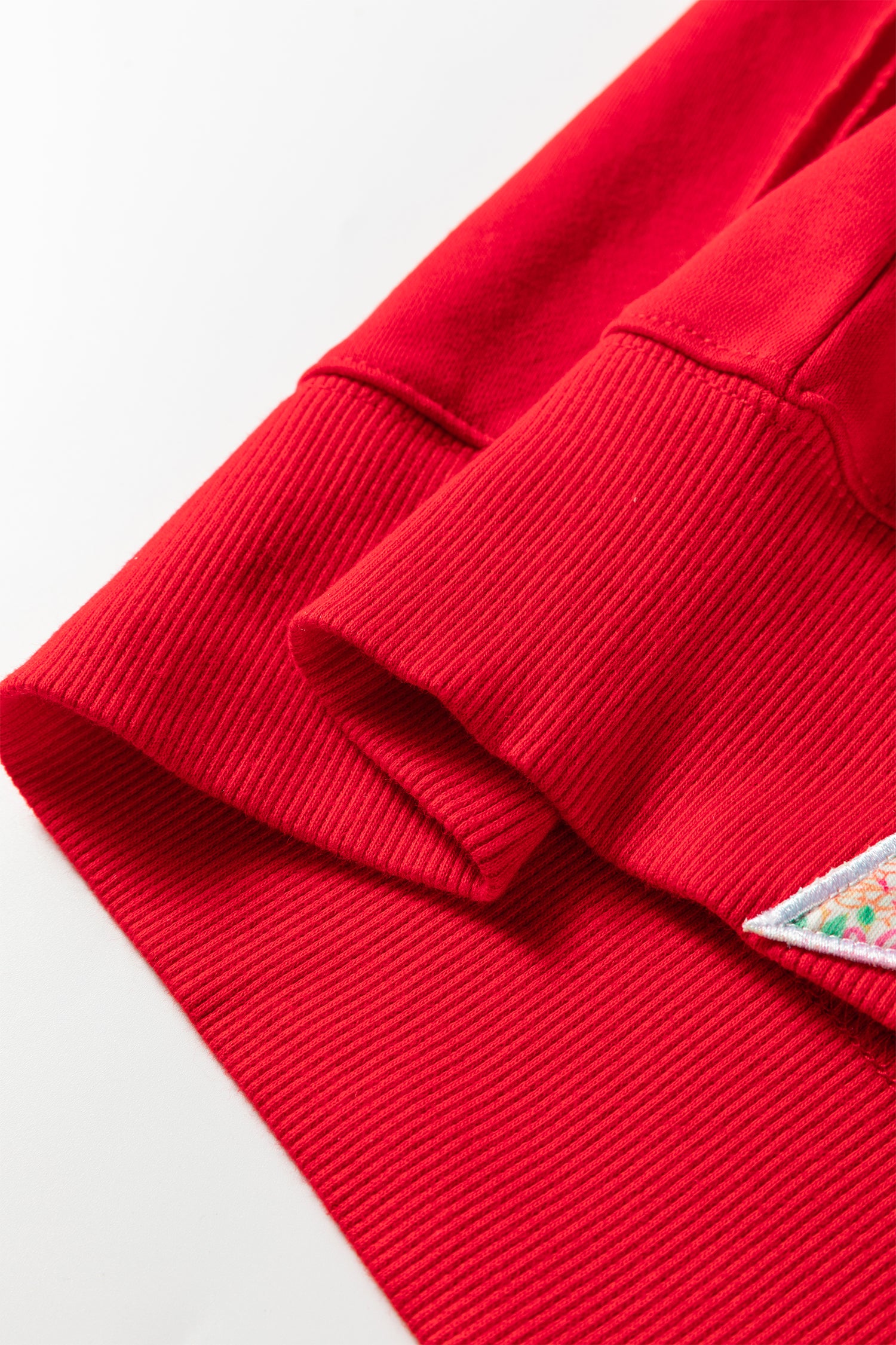 Fiery Red Floral Bow Patched Exposed Seam Patchwork Slit Baggy Sweatshirt