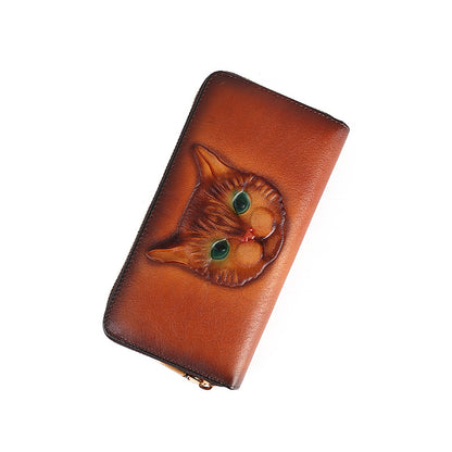 Genuine Leather Coin Purse Cat Embossed Multi-card-slot Card Holder Design Sense