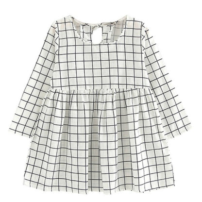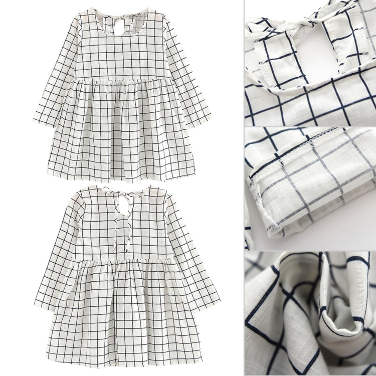 Girl Dress Children Dress Girls Long Sleeve Plaid Dress Soft Cotton Summer Princess Dresses Baby Girls Clothes, Size:120cm(White Square)