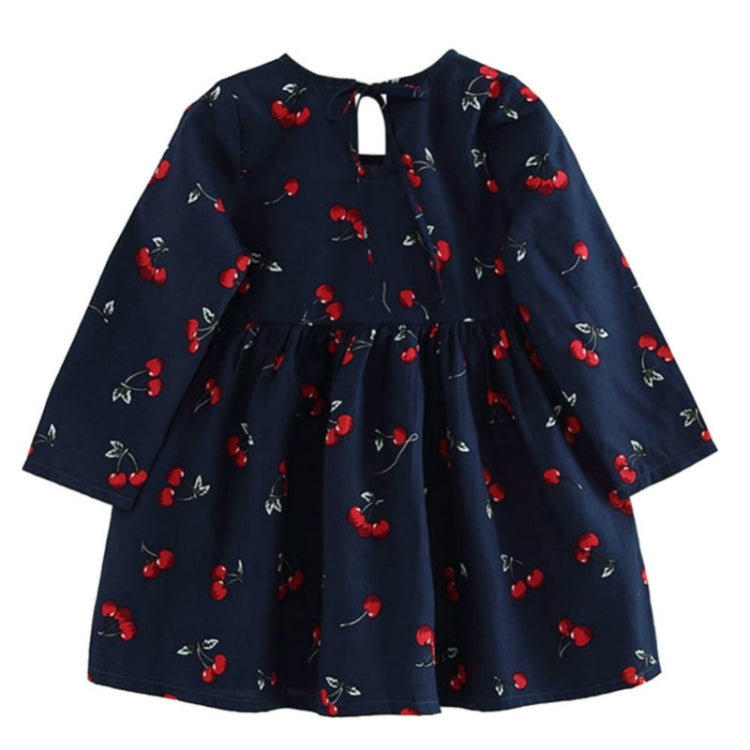 Girl Dress Children Dress Girls Long Sleeve Plaid Dress Soft Cotton Summer Princess Dresses Baby Girls Clothes, Size:90cm(Royal Blue Cherry)