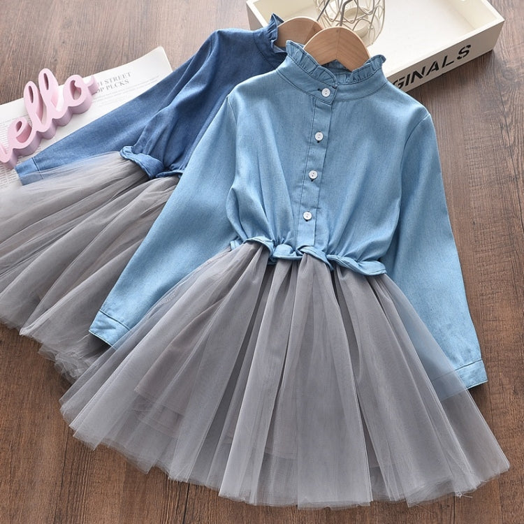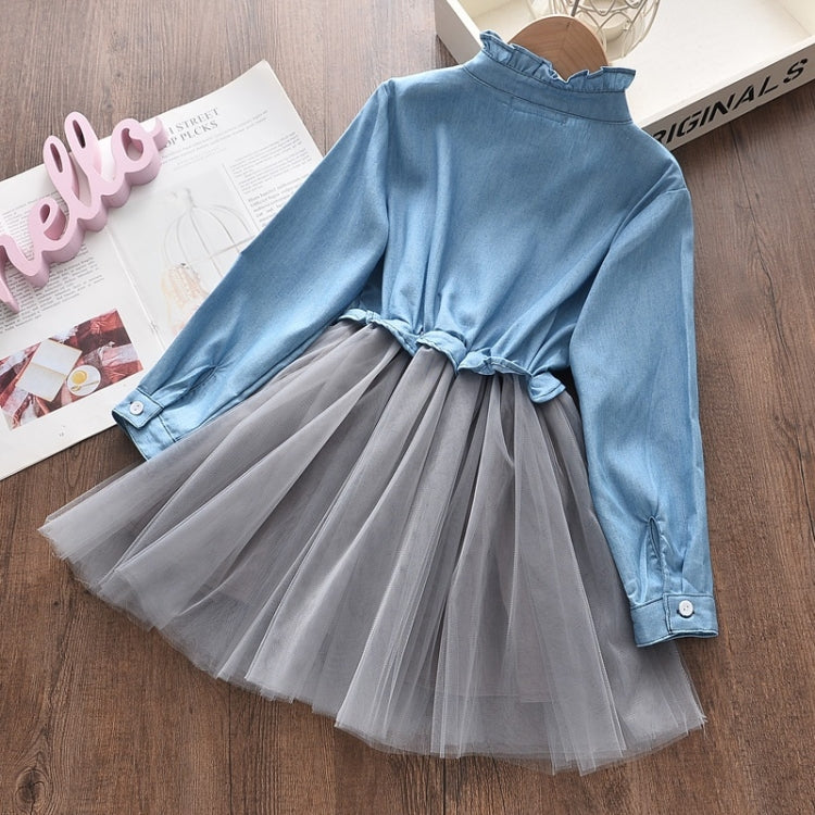Girls Denim Jacket + Mesh Skirt Two Sets (Color:Light Blue Size:100)