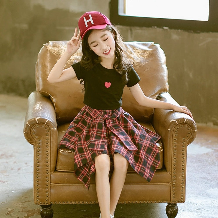 Girls Short Sleeve Top + Skirt Two-piece Suit (Color:Black Size:130)