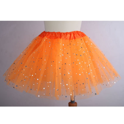 Girls Stars Sequins Mesh Tutu Skirt Costumes, Size:One Size(Black)