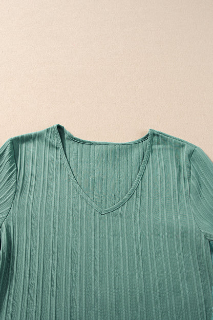 Grass Green Ruffled Half Sleeve V Neck Textured Top