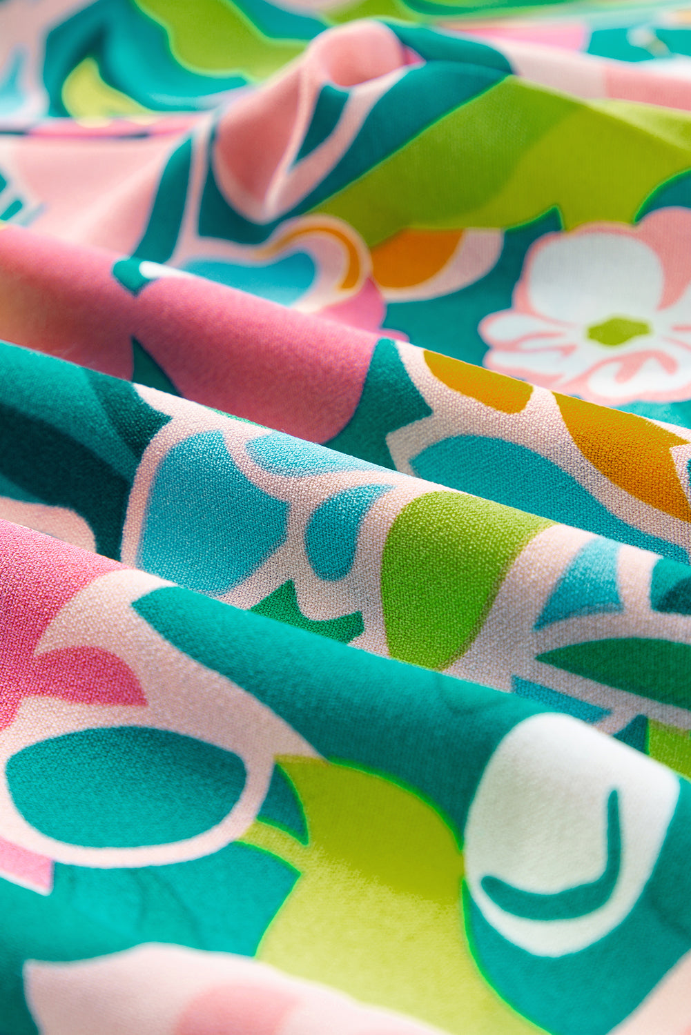 Elegant and charming with exclusive mix tropical print and ruffled design
