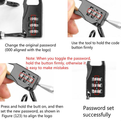 5. Features: small size, easy to carry, versatile, retractable steel cable, about 1 meter after stretching, combined password, security and anti-theft, zinc alloy lock hook, durable, easy to use