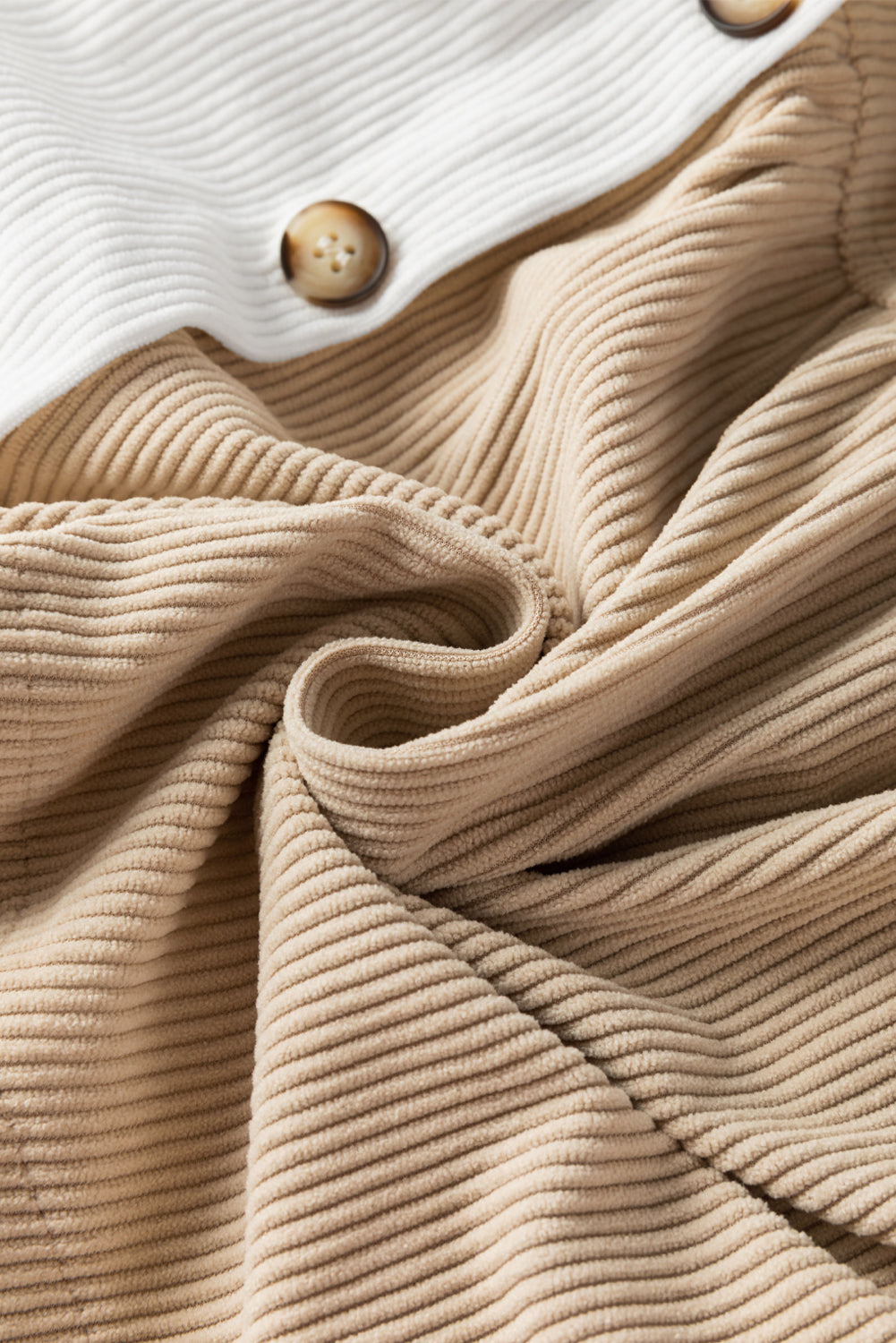 Khaki Corduroy Colorblock Button up Loose Shacket