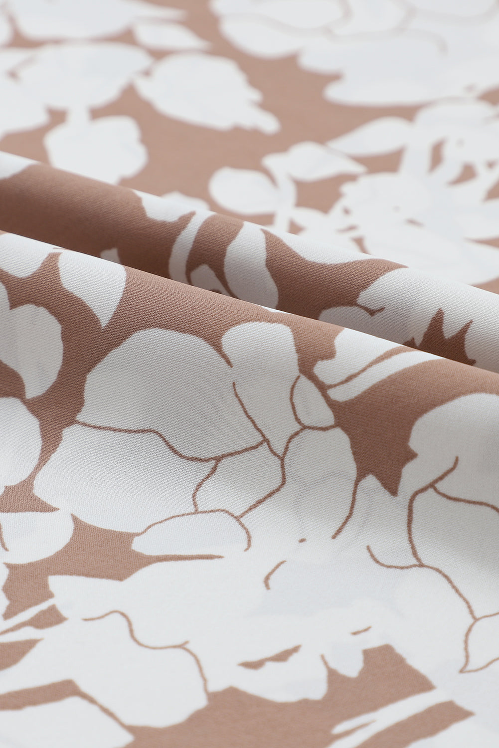 Light French Beige Floral Print Frilled Neckline Flounce Sleeve Blouse