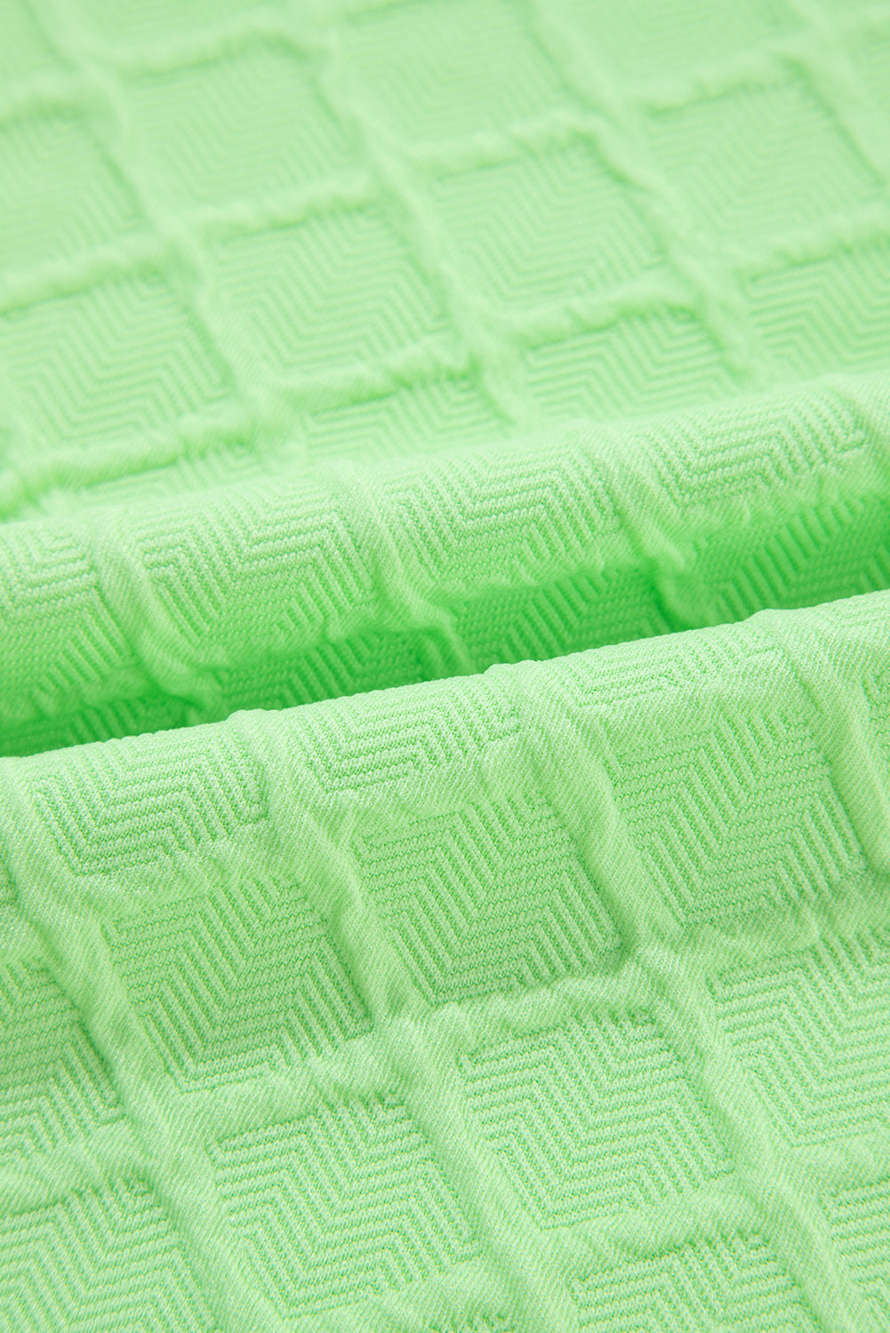 Light Green Checkered Textured Tee and Drawstring Shorts