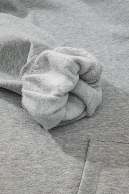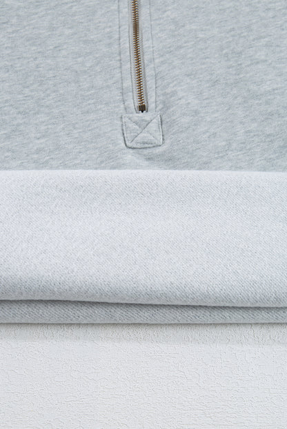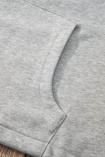Light Grey Fleece Lined Half Zipper Kangaroo Pockets Loose Hoodie