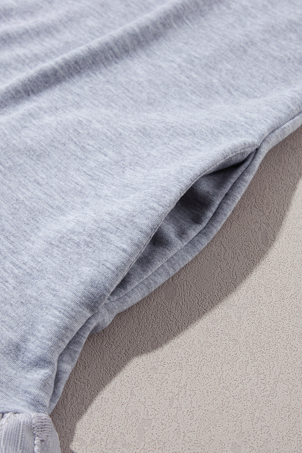 Light Grey Lace Floral Patchwork Ruffled T-shirt Dress