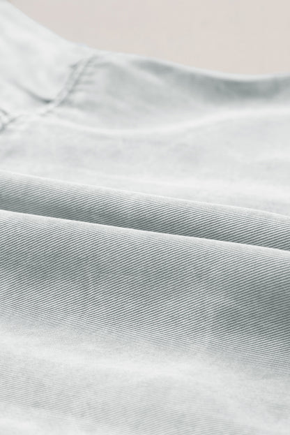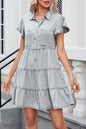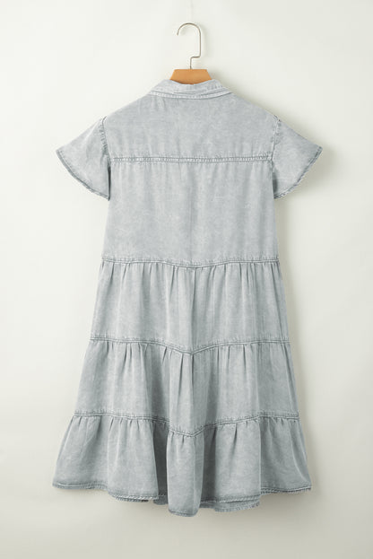 Light Grey Mineral Washed Ruffle Sleeve Tiered Chambray Dress