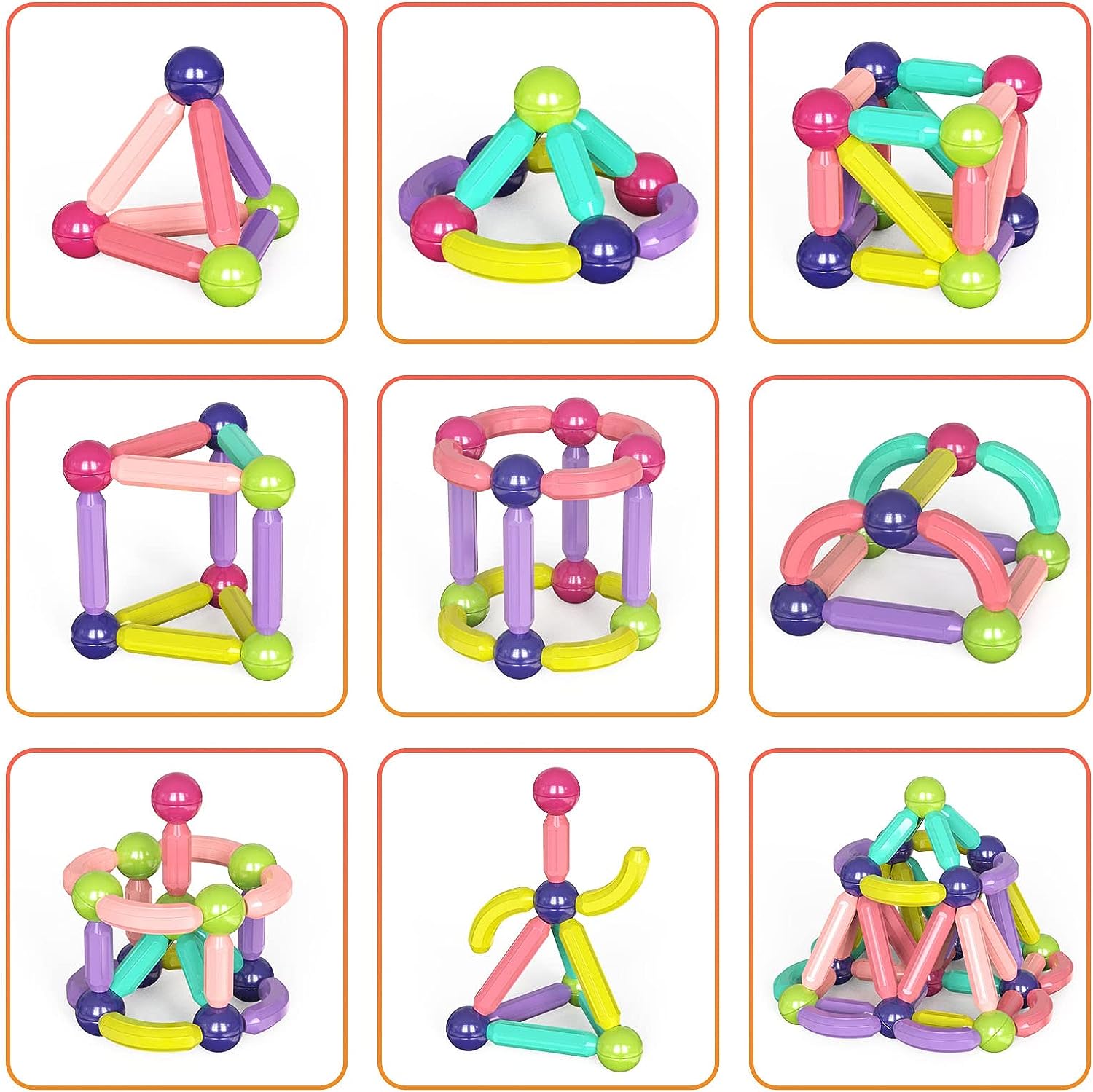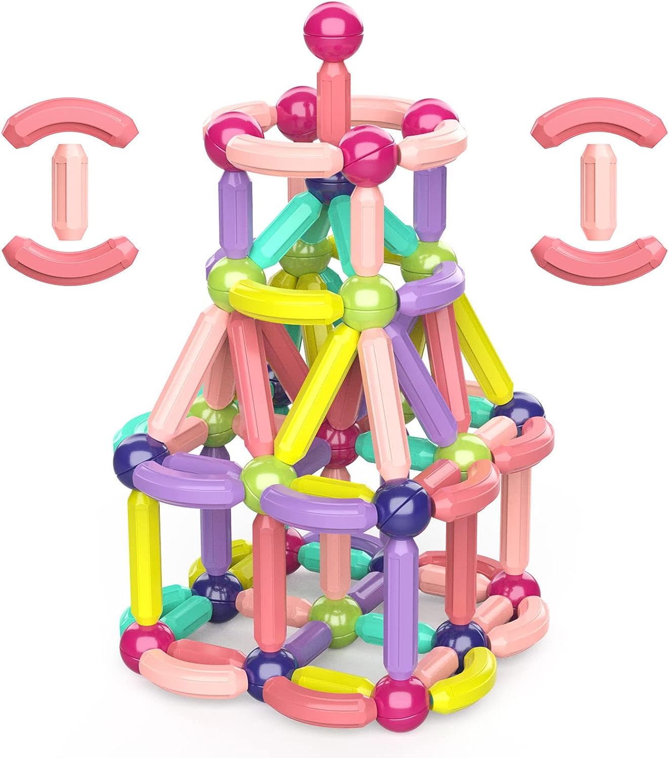 - [Educational enlightenment] Magnetic block toy sets can help children recognize basic colors and shapes, stimulate spatial thinking and visual-spatial awareness, improve fine motor skills, develop creativity and imagination, and exercise hand-eye coordination while stacking.