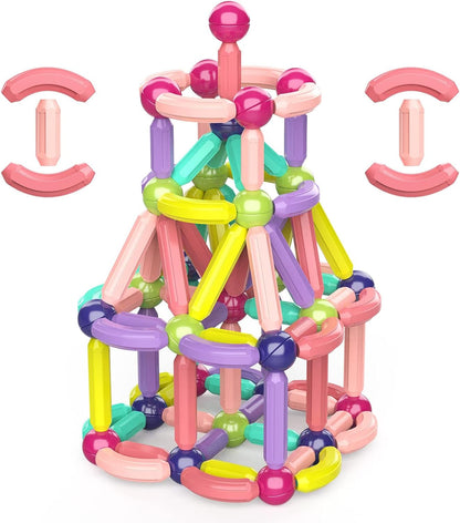Magnetic Building Blocks Set For Kids Ages 3, STEM Construction 3D Stacking Magnetic Toys For Boys And Girls,Magnetic Sticks And Balls Game Set For Kid Is Early Educational Learning 128PCS.