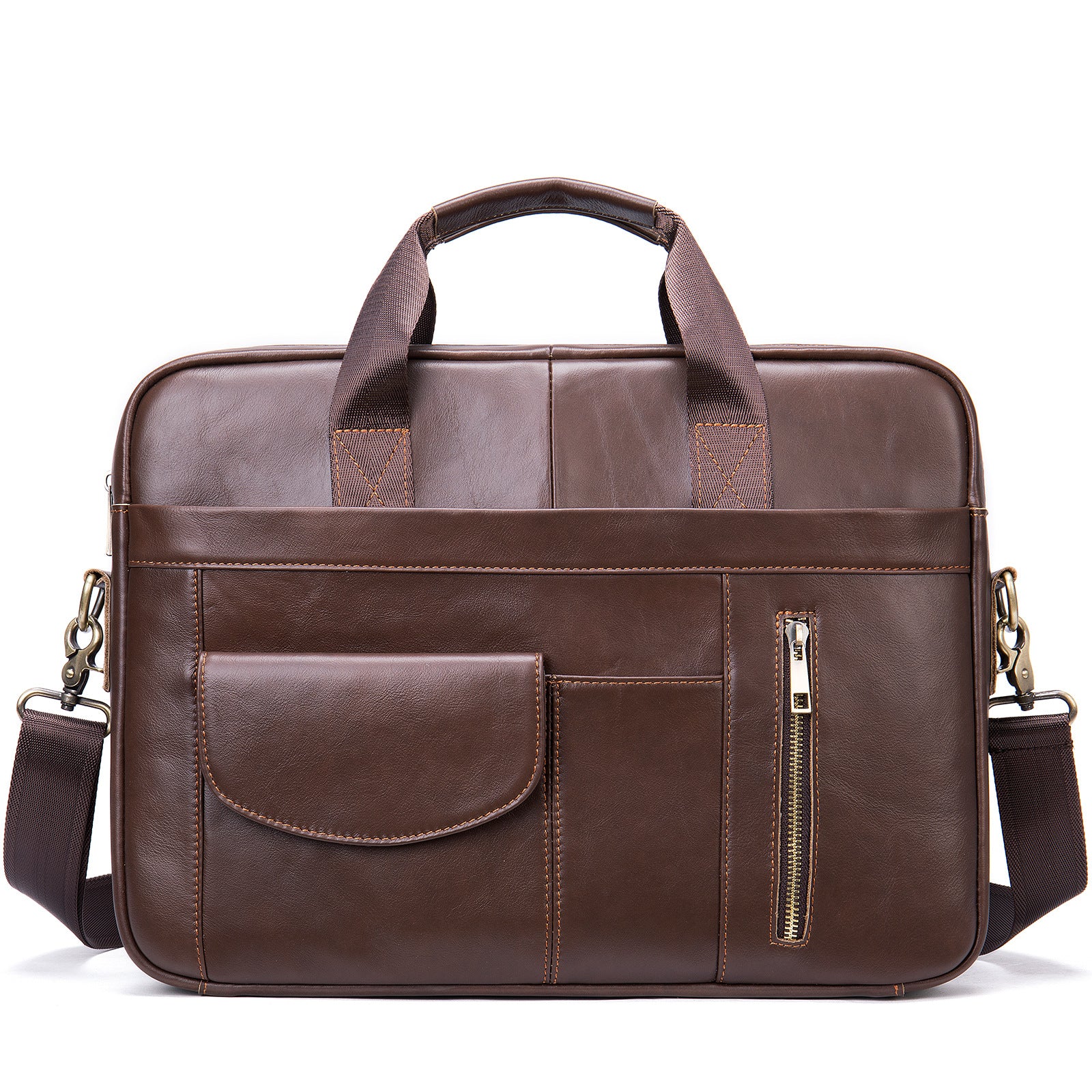 Overview: Experience the epitome of sophistication and functionality with our Men's Leather Briefcase, meticulously crafted for business magnificence. This briefcase, made from the first layer of cowhide, exudes luxury and ensures durability for all your professional endeavors. With a sleek solid color design and various options to choose from, this briefcase is your statement piece for business travel.