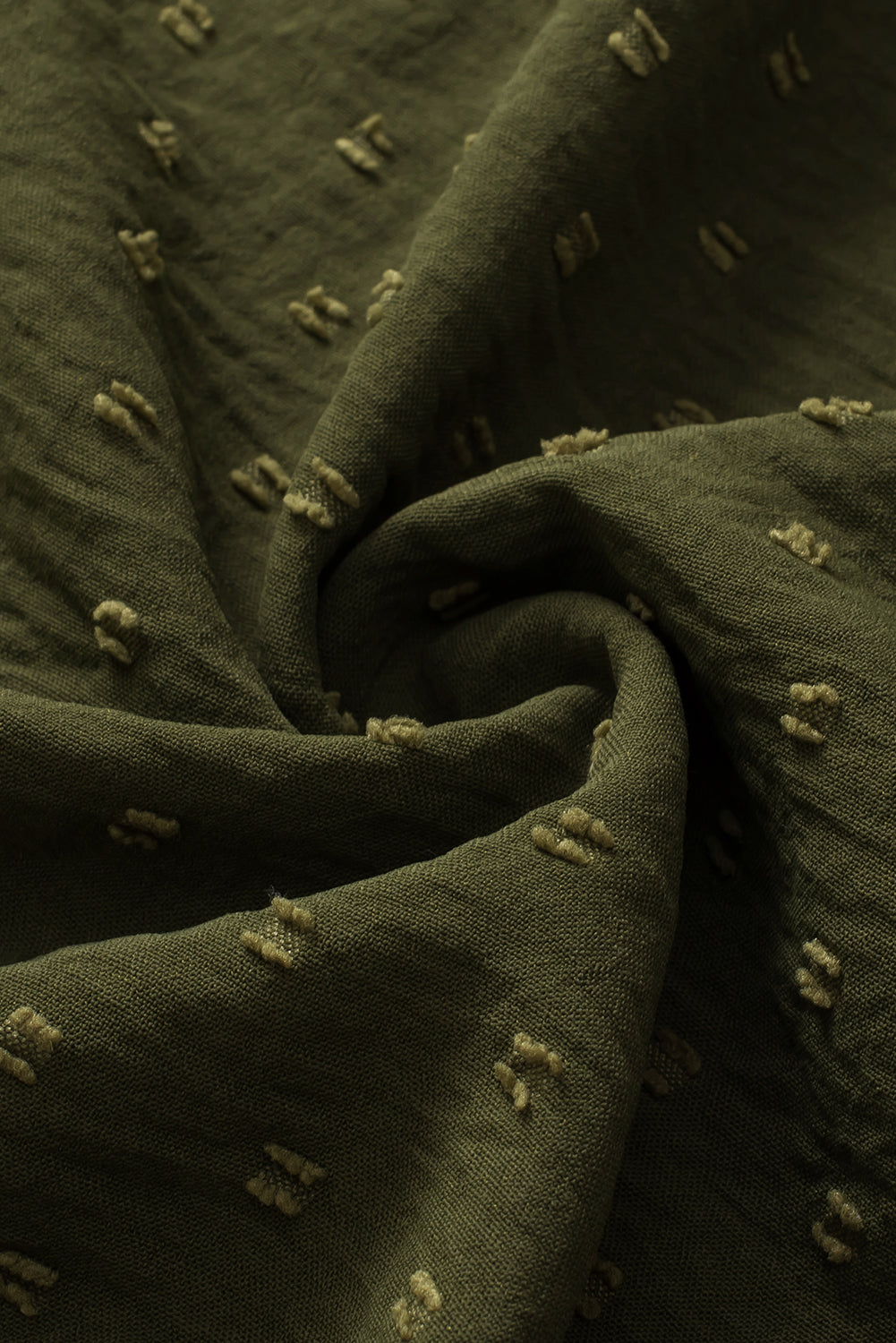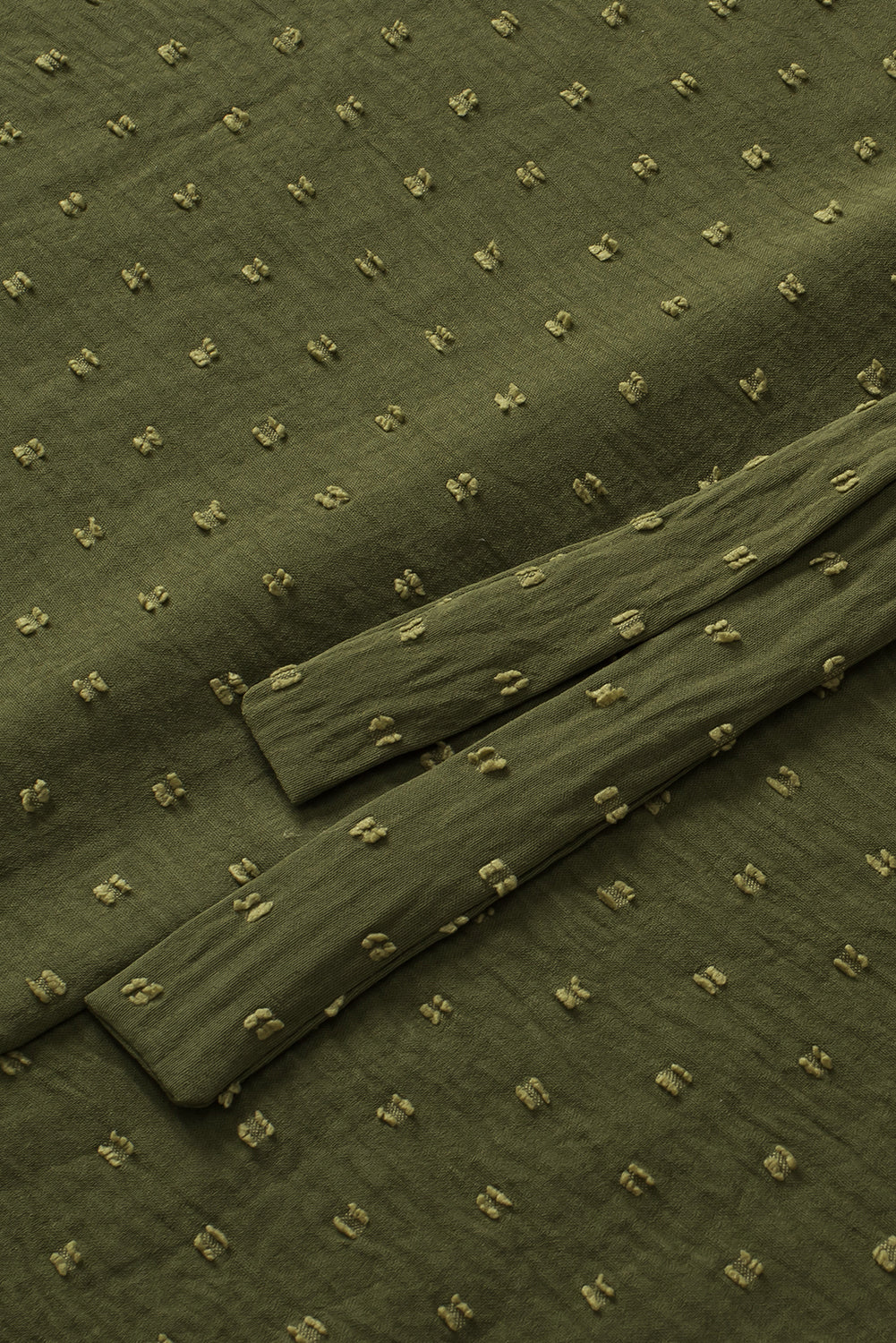 Moss Green Plus Size Swiss Dot Mock Neck Tied Nape Top