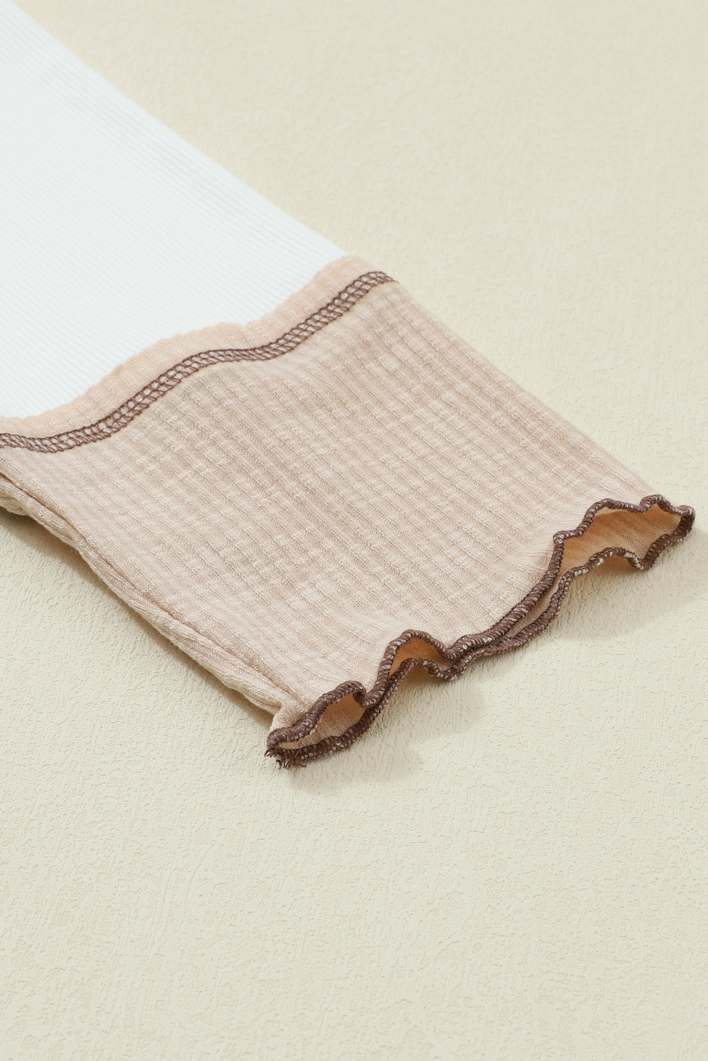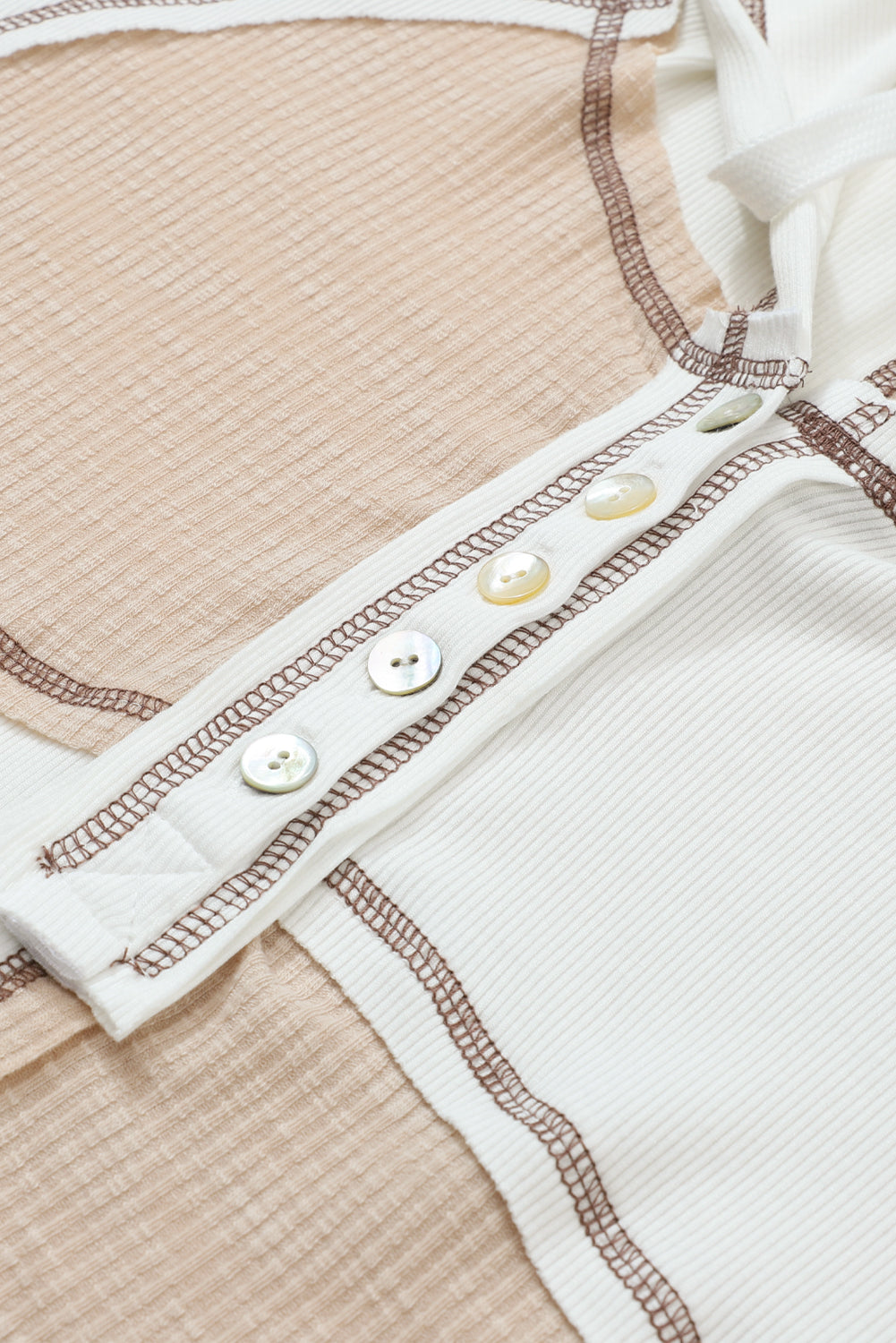 Multicolor Colorblock Seamed Ribbed Henley Hoodie
