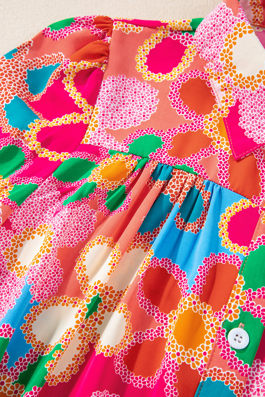 Multicolor Floral Print Bubble Sleeve Shirt