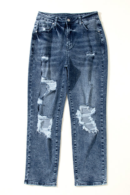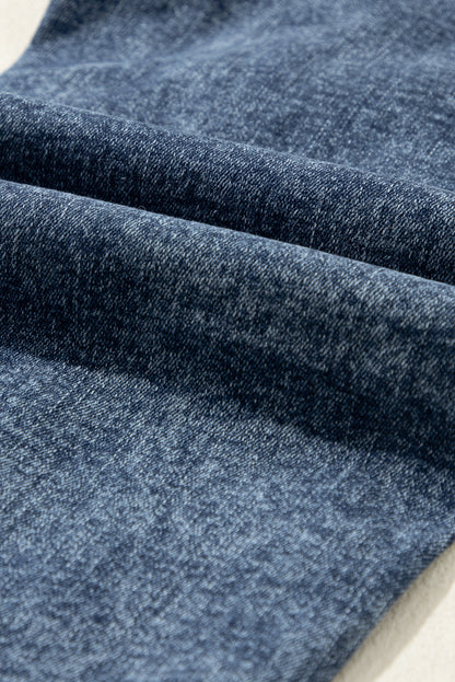 Navy Blue Light Wash Frayed Slim Fit High Waist Jeans