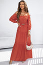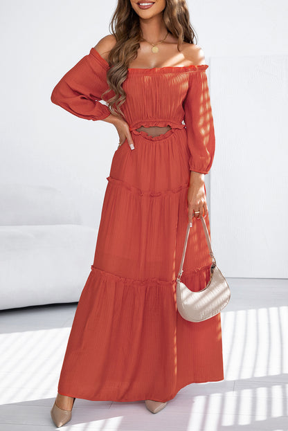 Orange Off Shoulder Balloon Sleeve Cutout Ruffled Maxi Dress