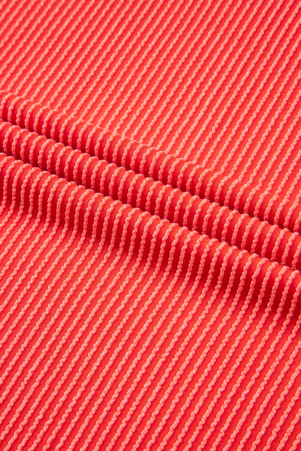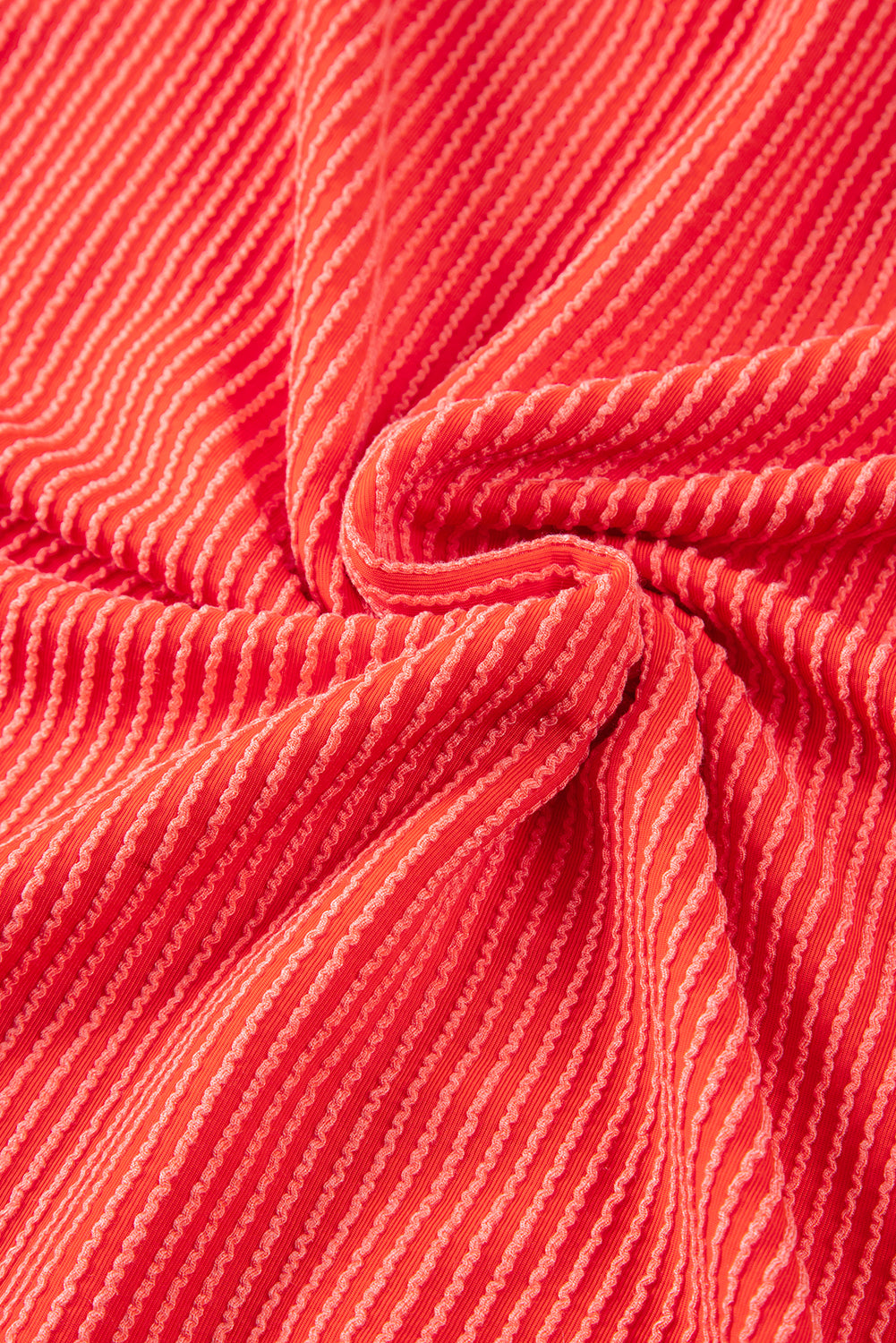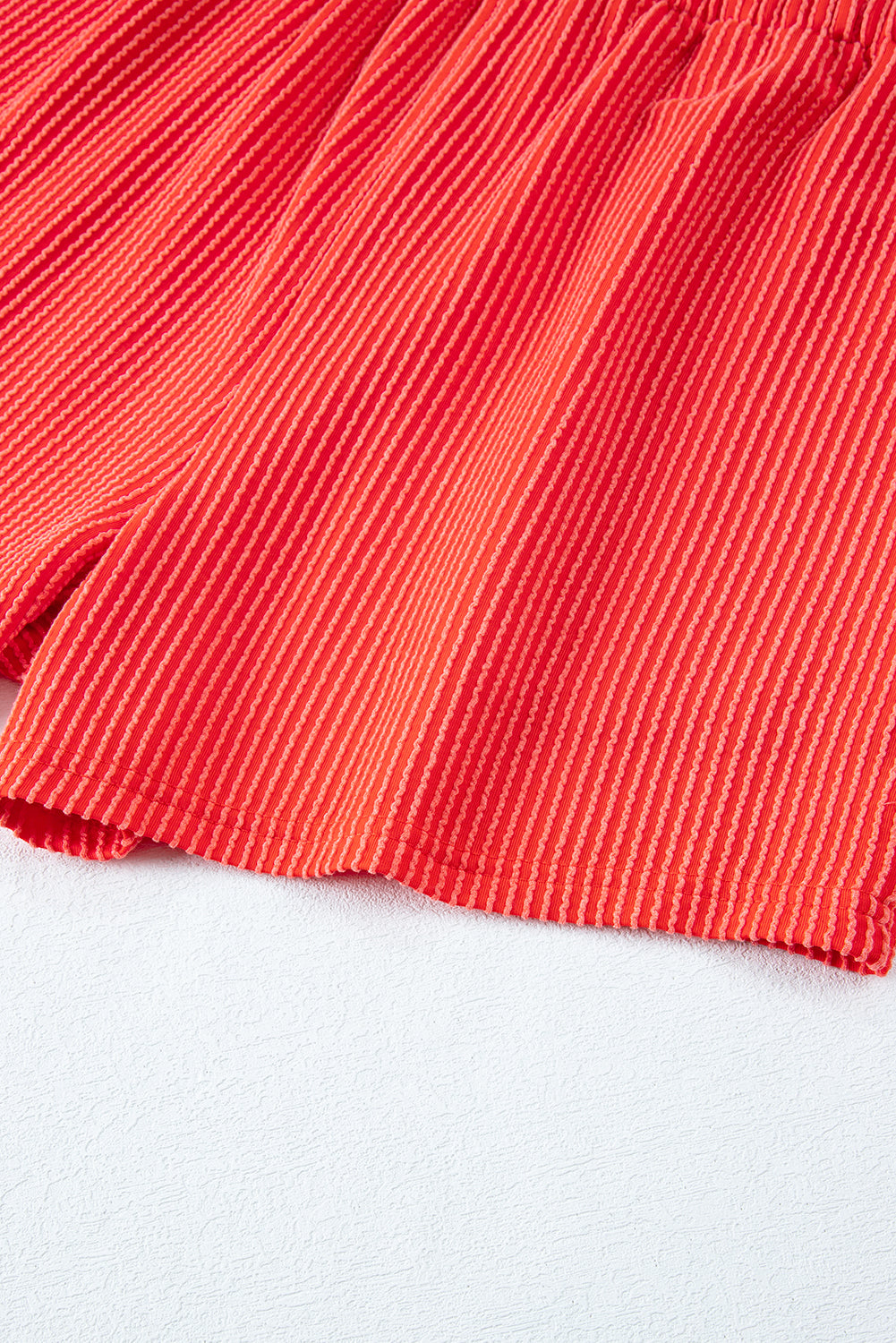 Orange Ribbed Textured Knit Loose Fit Tee and Shorts Set