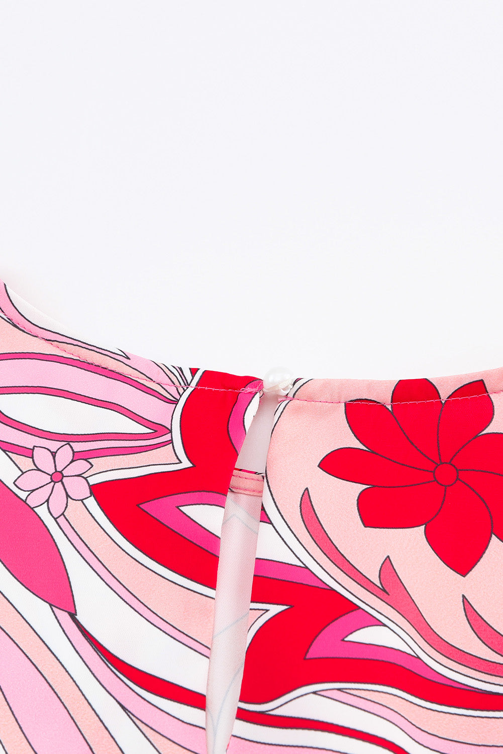 Paisley Printed Button Keyhole Back Belted Mini Dress