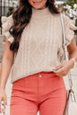Parchment Cable Knit Mock Neck Cap Sleeve Sweater
