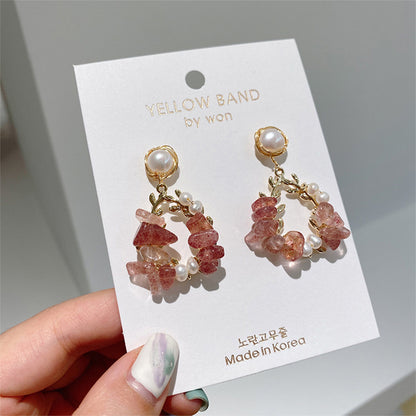Pearl Earrings Temperament Super Fairy Crystal Net Red Earrings Design Leaf Earrings