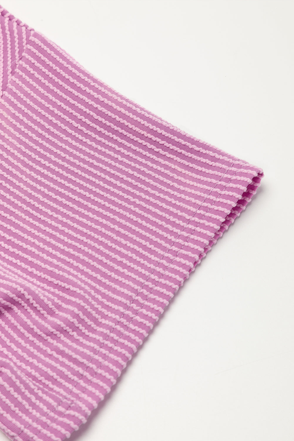 Phalaenopsis Ribbed Textured Knit Loose Fit Tee and Shorts Set