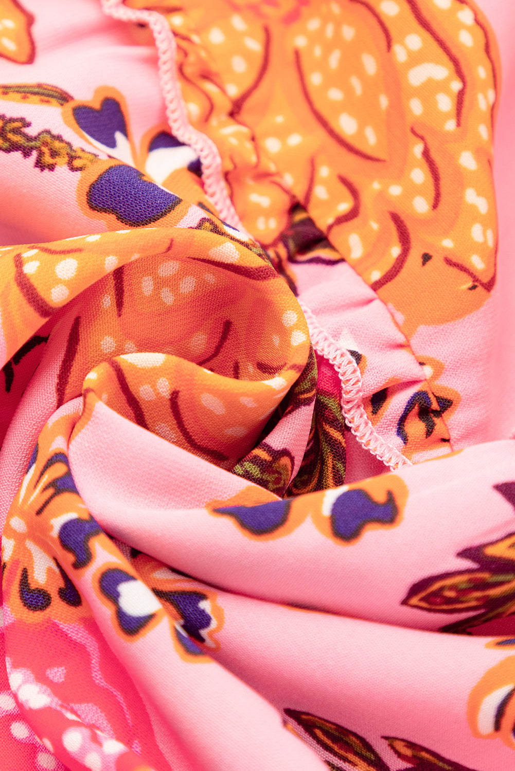 Pink Floral Square Neck Ruffled Flutter Sleeve Tiered Midi Dress