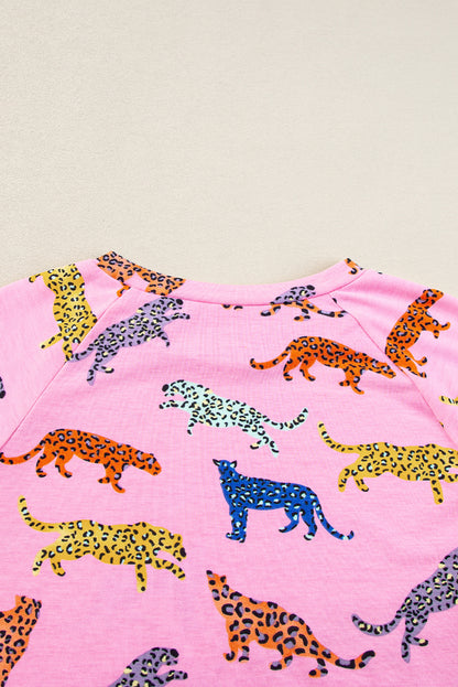 Pink Flower Print Short Sleeve High Waist Two Piece Shorts Set