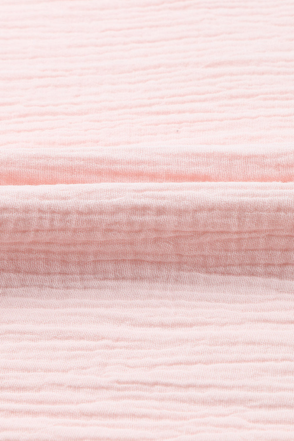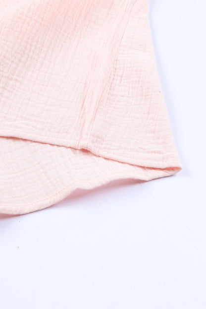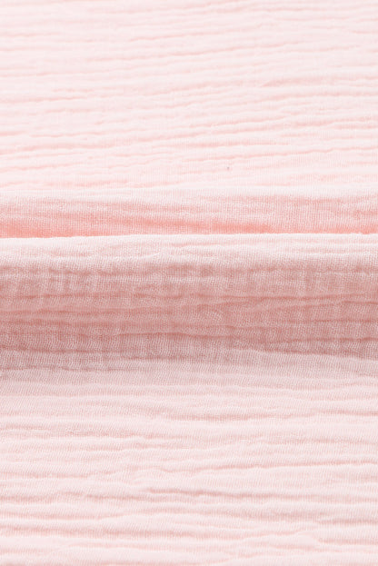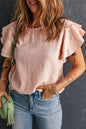 Pink Textured Tiered Ruffled Short Sleeve Blouse