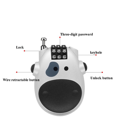 Portable Bicycle Motorcycle Anti-Theft Lock Telescopic Wire Lock Cartoon Cow Password Lock(Black)