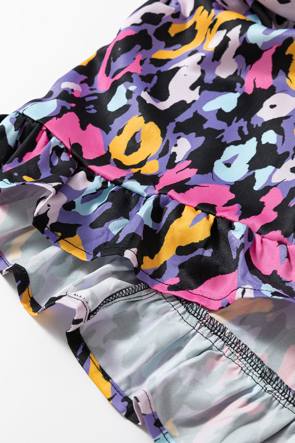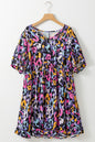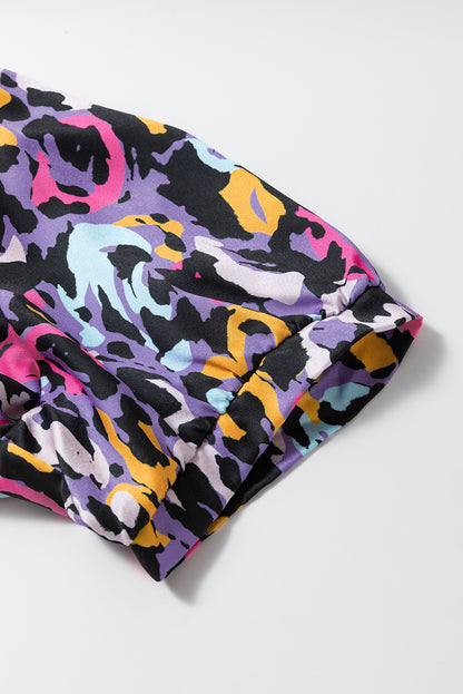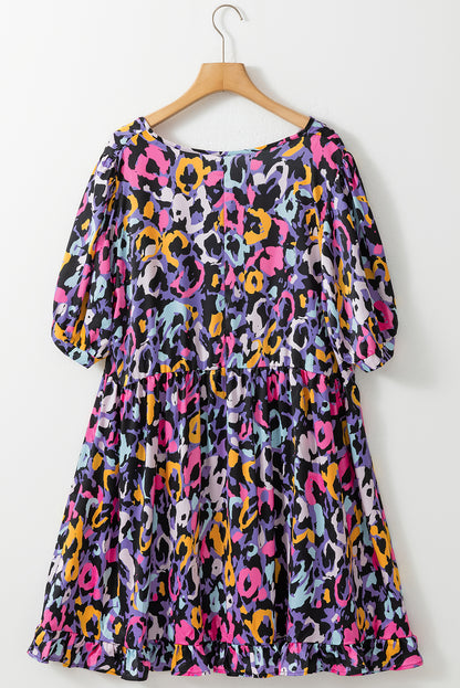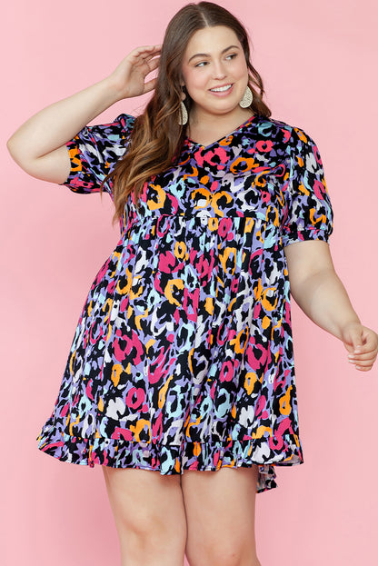 Purple Leopard Print Ruffled V Neck Plus Size Mini Dress