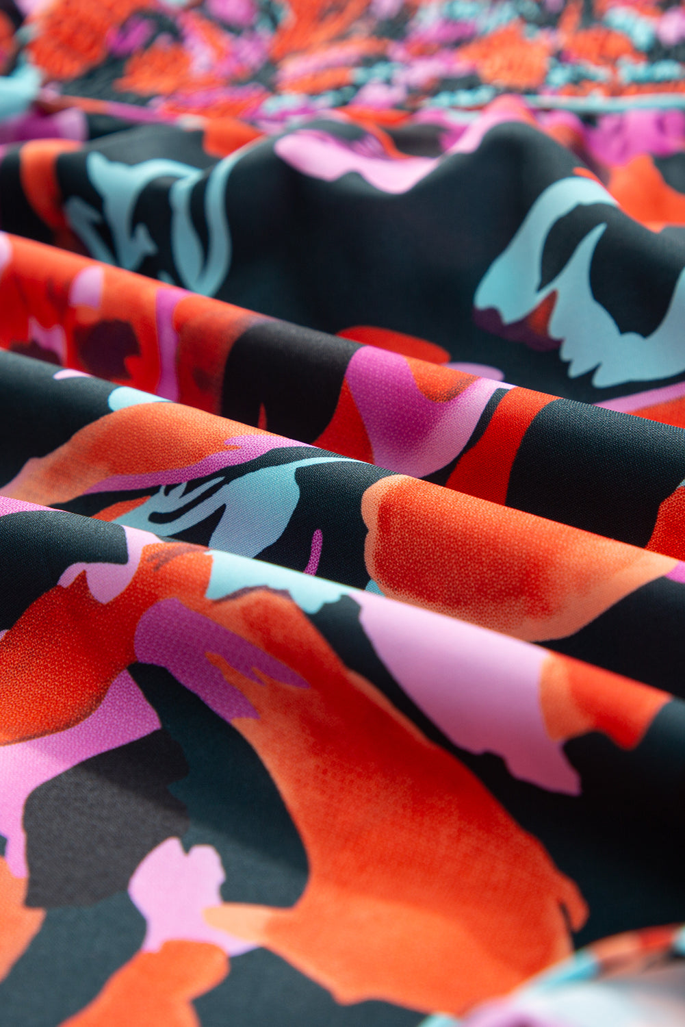 Red Dahlia Abstract Floral Shirred Detail Puff Sleeve Blouse