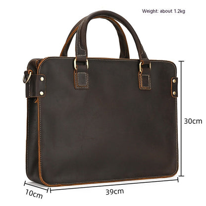 Retro Crazy Horse Leather Briefcase 14-inch Commuter Business